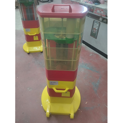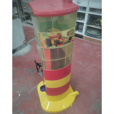 Distributore come da fotoUna palla sorpresa/magica viene erogata subito e 1 palla magica scende sul piano di gioco per essere giocata e viene vinta sempre. Dotato di cassetto monete indipendente con serratura di sicurezza. Munito di ruote e maniglia per agevolare lo spostamento.