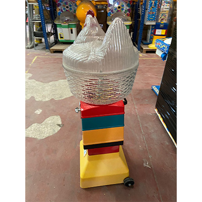 Distributore usato in ottime condizioni per palle da 90mm, colorato, completamente in plastica quindi non soggetto a ruggine. Globo trasparente realizzato in policarbonato ad alto impatto.E' dotato di maniglia e ruote posteriori per facilitarne gli spostamenti.